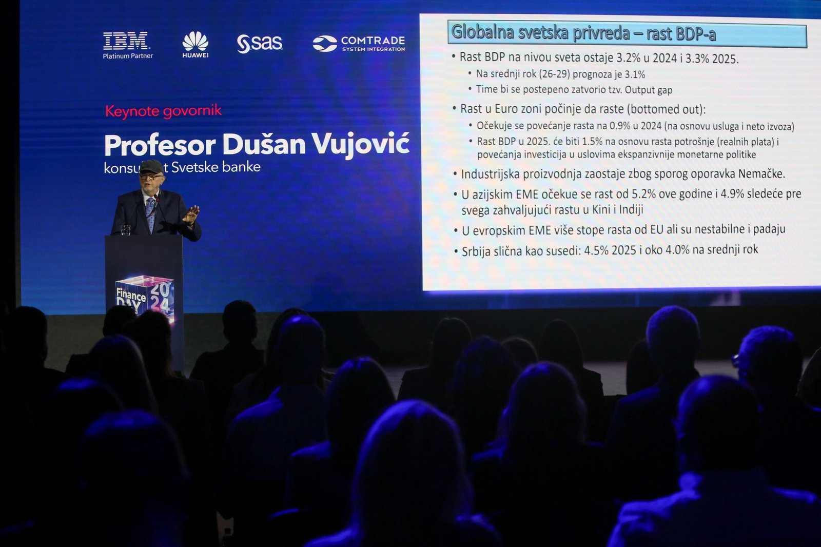 A keynote presentation followed from Professor Dušan Vujović, PhD, a leading economist and World Bank consultant. Drawing on extensive statistical data and global-local insights, Professor Vujović provided a comprehensive overview of current trends shaping the financial landscape. His lecture laid the foundation for the day’s discussions, exploring the challenges and opportunities that lie ahead for the industry.